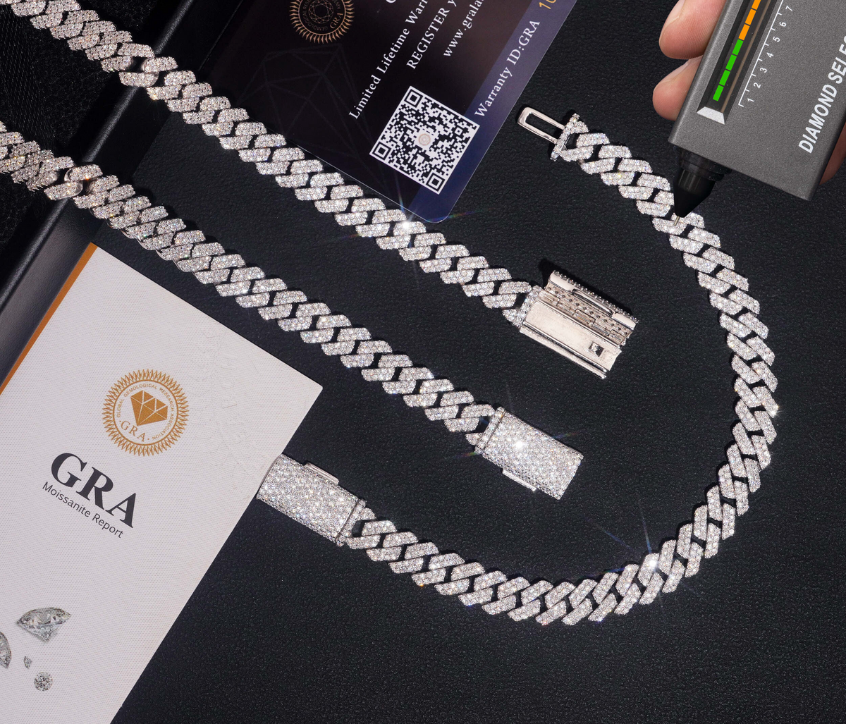 All of our jewelry is moissanite and sterling silver and all orders come with a GRA Certificate of authenticity to prove so!